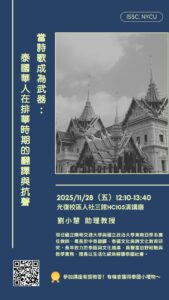 ▸ 講題:當詩歌成為武器:泰國華人在排華時期的翻譯與抗聲